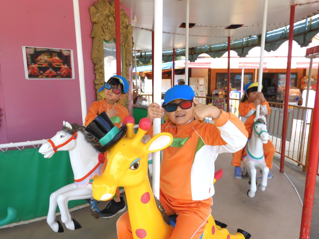 👆馬もキリンも回るぅ~🐎🦒◎🐎🦒